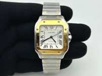 21074307B BV공장 까르띠에 산토스 2018 미디움 옐로우골드콤비 화이트다이얼 스마트링크브레이슬릿