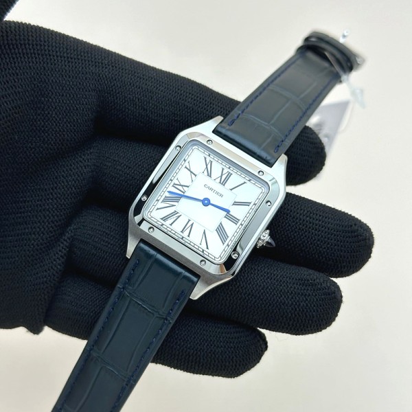 09114883A F1공장 까르띠에 산토스 뒤몽 43.5mm 실버다이얼 블루가죽스트랩