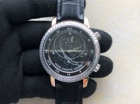 20470614e TW공장 파텍필립 6104P 문 로즈골드금장 블랙다이얼 다이아몬드베젤 가죽스트랩